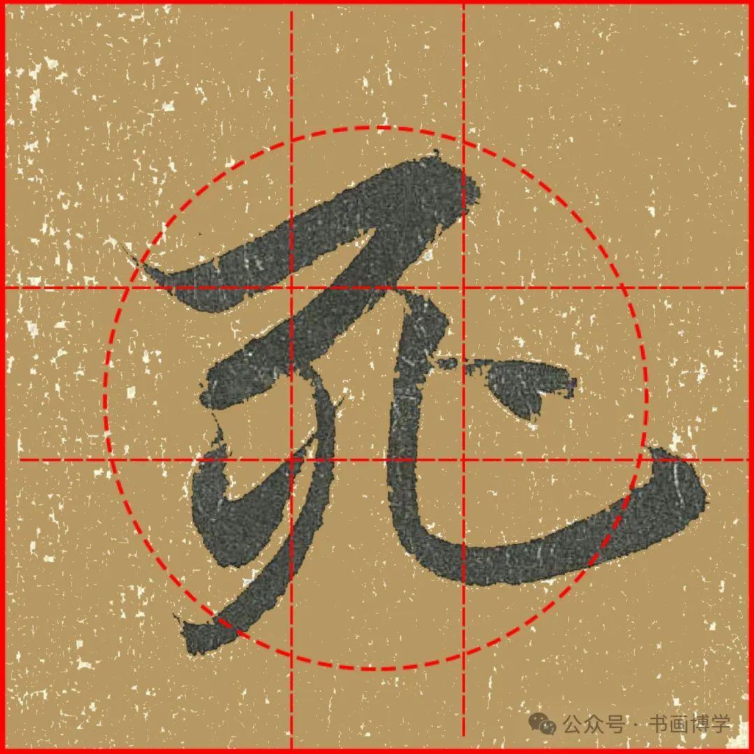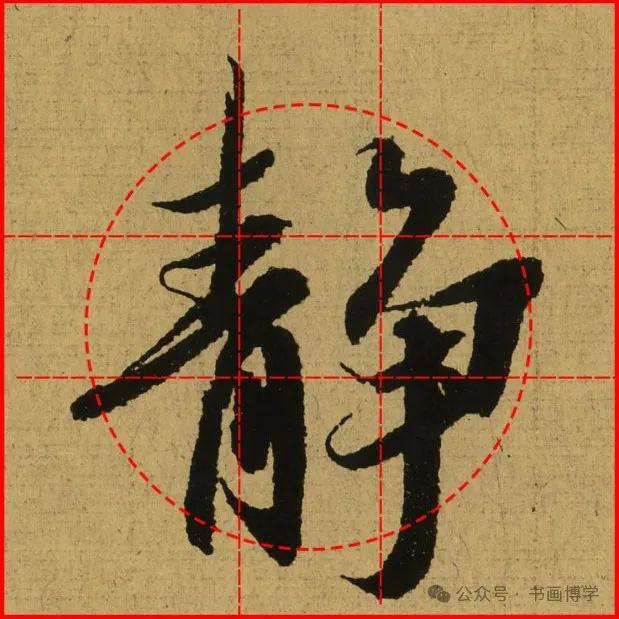这是由启功先生发明的黄金律练字法,仔细观察会发现其中每个字的重心点在哪,相比于普通九宫格,中心会较为紧凑。然后下面的格子是在其基础上增加一个圆形虚线,便于初学者掌握字形大小而临习。